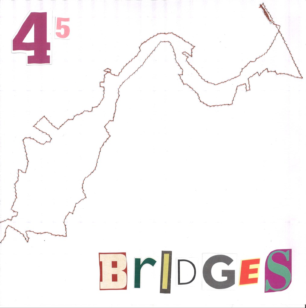 To celebrate my husband’s 45th Birthday we cycled over all 45 bridges in the Bristol area, going over each only once. I used a sewing machine to create the route on an LP sized sleeve. On the inside the bridges are labelled. We spent his birthday cycling over them all, taking pictures and audio recordings of a fact about each one. All information was taken from the book ‘From Brycgstow to Bristol in 45 Bridges’ by Jeff Lucas. The route and other information if available from Bristol Books (www.bristolbooks.org/shop/from-brycgstow-to-bristol-in-45bridges). I’ve created copies of this and am now giving it to anyone I know who turns 45, in a limited edition of 45!