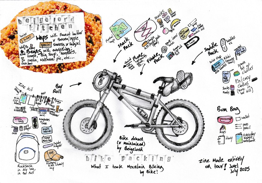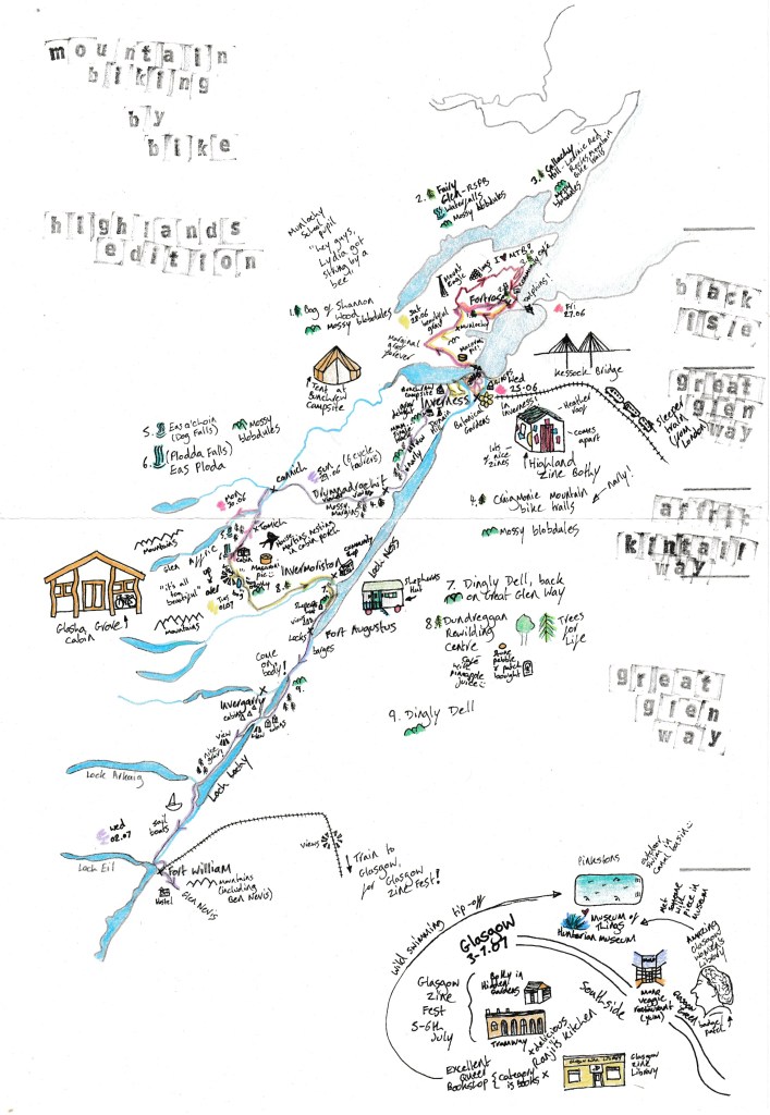 Mountain Biking by Bike has been an imagined zine series for some time. The series includes rides in the Welsh Valleys, the New Forest, the Highlands and King Alfred’s Way. I wanted to highlight how you can easily go mountain biking by bike for a small adventure for a few days (or more) away from home. If you’re me this usually involves getting the train at some point, but doesn’t need to. I’m based in Bristol so the series starts from there and actually only one of the zines actually exists in physical form; No. 5 – The Highlands, shown below.
