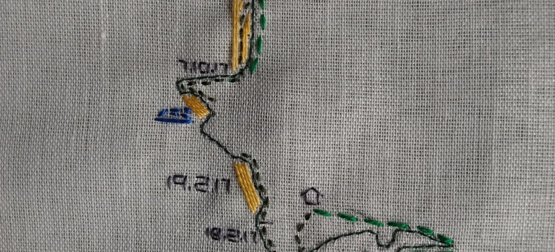 A selection of these are presented below. I embroidered each day’s route on printed photos of these selected images and have them in a frame on our wall at home.