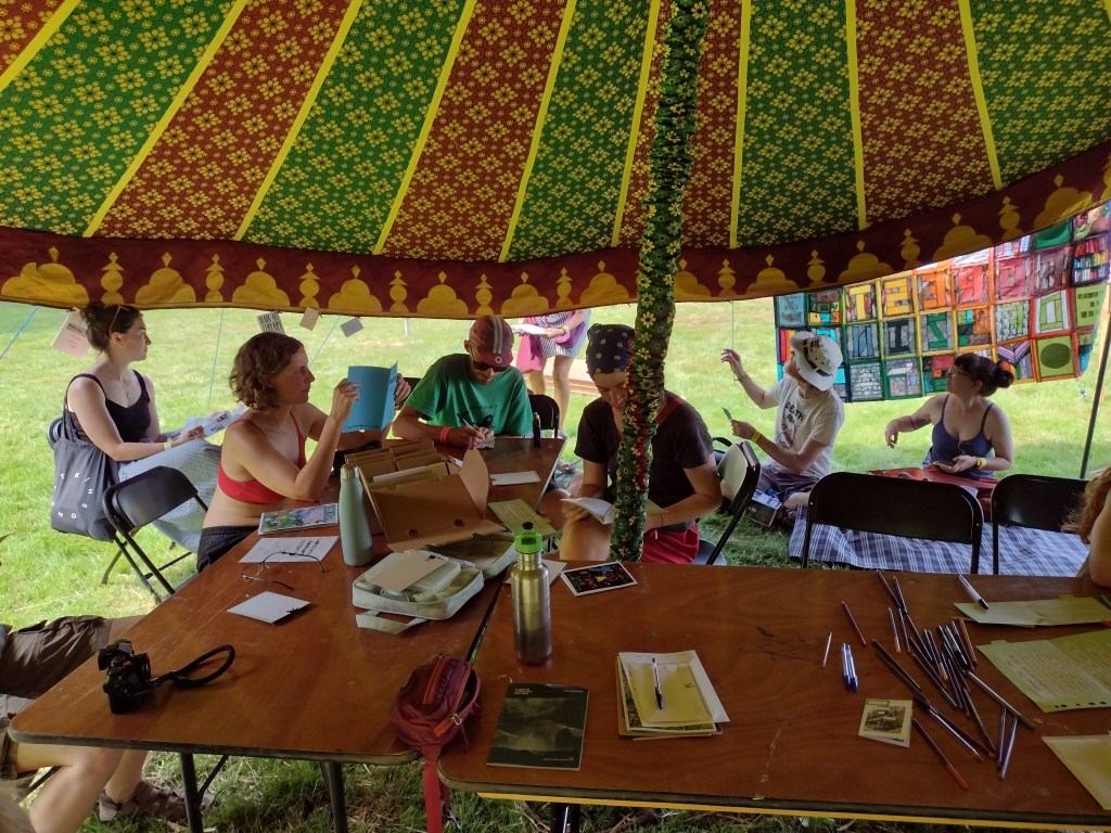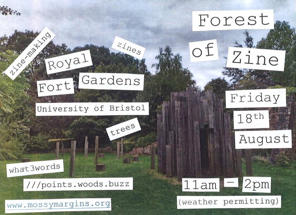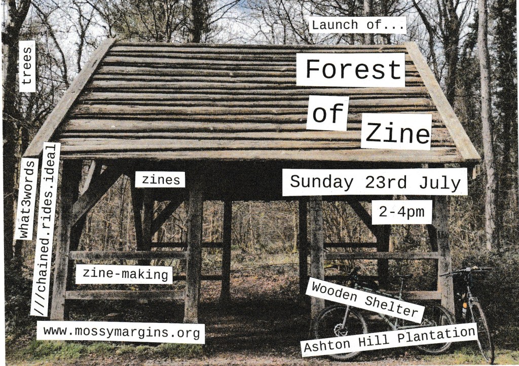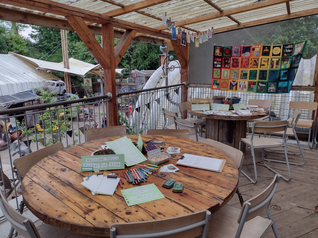 The launch of Forest of Zine took place on Sunday 23rd July, as close to International Zine Library day as possible. The location can be found using what3words ///chained.rides.ideal