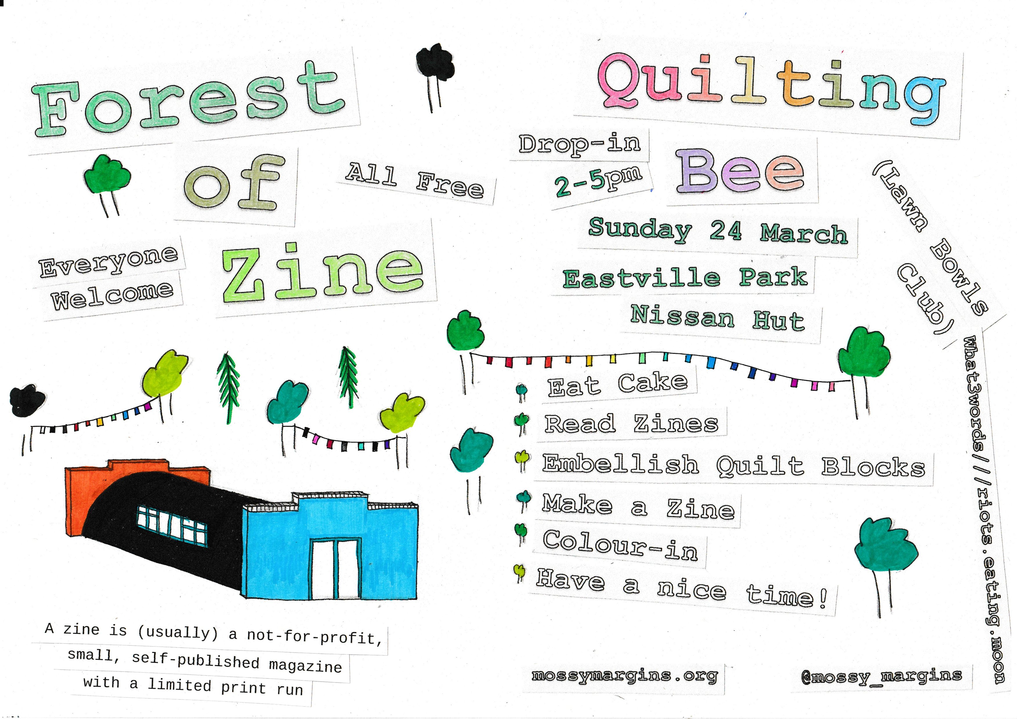 The next step is to take the quilt on a cycle tour (the first of many?). This time from Aberystwyth to the Forest of Dean for International Zine Library Day on Sunday 21st July! I’ve planned my route, booked my campsites and now I need to contact some places along the way that I’d like to take the Forest of Zine to visit.